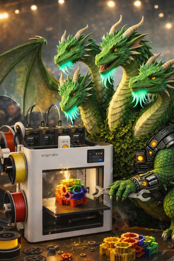 Built on the Snapmaker U1 platform, Brahma is unlike any other—a four-headed dragon, each mind working in parallel to explore new ideas, materials, and techniques.