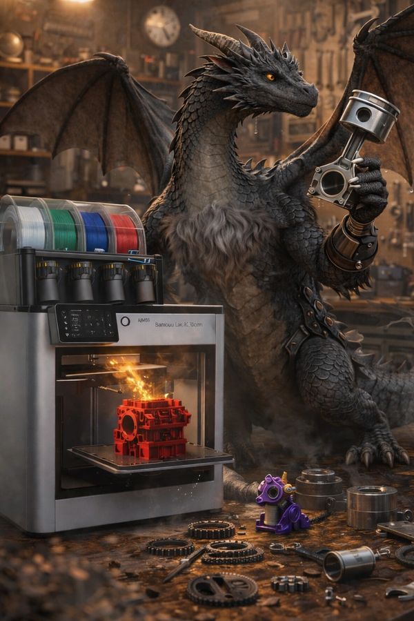 Jerry is the technical genius of the workshop. Powered by a Bambu X1 Carbon with AMS, he thrives when projects demand tight tolerances, advanced materials, and flawless execution.